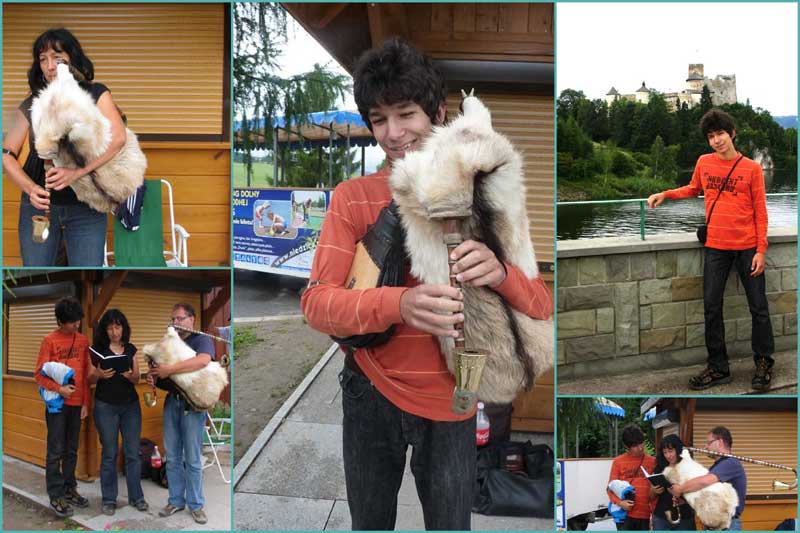– Na gajdzie.- odpowiada- To taki znany w tych rejonach instrument, wykonany z długiego, !!! rogu, którym wydostaje się na zewnątrz dźwięk i wypełnianego powietrzem worka stworzonego z koziej skóry. Jest podobny do szkockich dud, ale zamiast dmuchać we ustnik fletu, pracuje się umieszczonym pod pachą miechem.